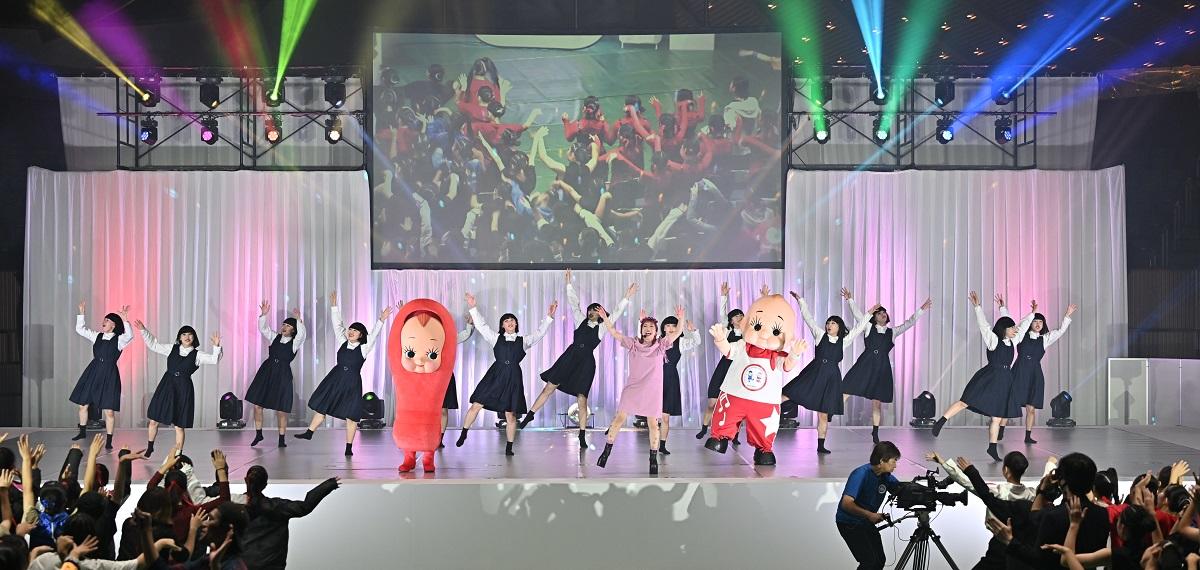 大会公式マスコット「ダンスキユーピー」とたらこキユーピーも壇上に上がり、みんなで「キユーピー 3分クッキング」のオープニングダンスや「たらこキユーピーダンス」を踊り、会場一体で大盛り上がり!