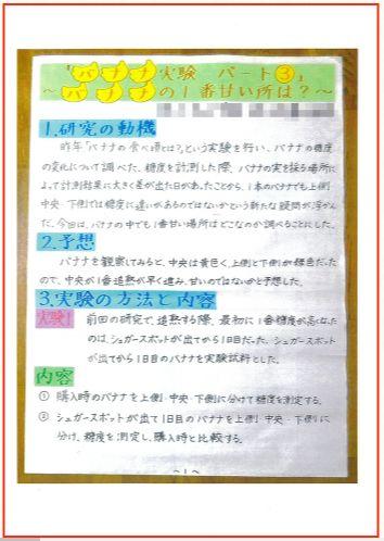 例えば、「フードロスを減らすために、いつもは捨ててしまう野菜の皮や芯で、料理はできないか?」といった、社会課題の解決をめざすアプローチや「バナナはいつ、どこが一番甘くておいしいのか」という純粋な疑問をとことん突き詰めた研究などです。このお子さんは、なんと数年間にわたってバナナに注目し、観察を続けてくれました。どちらも、私たち大人がはっとさせられる素晴らしい力作でした。