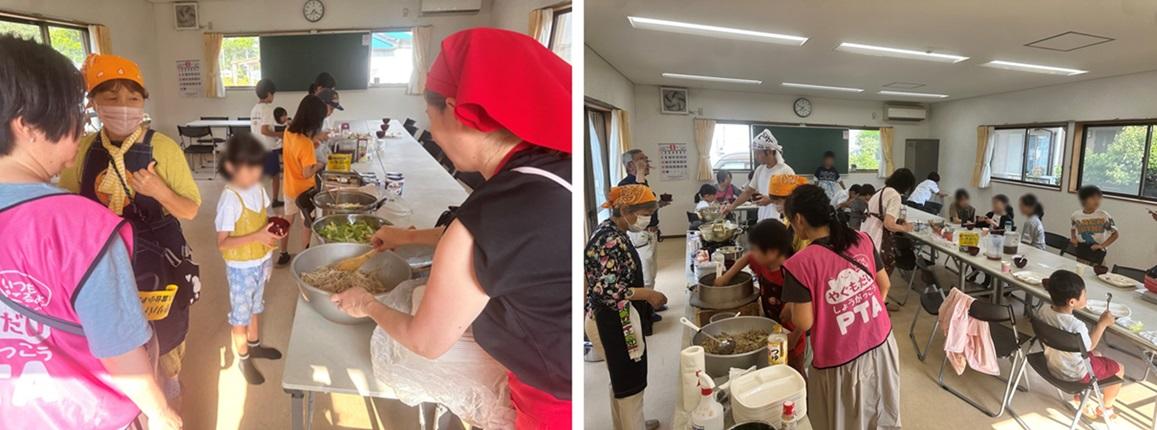 子どもたちの目もキラキラ。にぎやかな食卓に「いただきます!」の声が響きます。