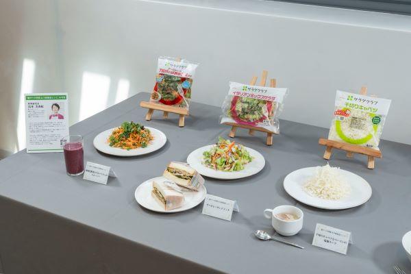 朝食の喫食機会の減少が進んでいることが分かったので、ゲストとして登壇した料理研究家でラク家事や食品ロス削減などのアドバイザーの島本美由紀さんに、朝食を食べることの大切さについての発表とパッケージサラダを使った“朝サラダ習慣”をテーマにした3つのレシピの考案をしていただきました。いずれもパッケージサラダを使うことで特別な調理技術が不要で、手軽に作れる野菜たっぷりの朝食に適したメニューです。