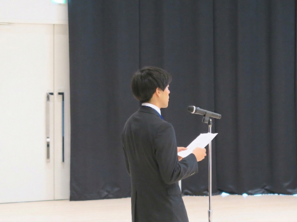 研究開発部門に配属された新入社員代表が、創始者・中島董一郎さんが日本初のマヨネーズ完成に至るまでに示した「努力すれば必ず報われる」という信念や、「原料に対する確固たるこだわり(良い商品は良い原料からしか生まれない)」への深い共感、そして研究開発の立場から、「商品を通じて食卓へ笑顔を届ける未来を創造したい」という抱負を語りました。その上で、「今できないことも、チームと志で必ず超えていける」と信じて一歩ずつ着実に成長し、キユーピーグループの未来を切り開く原動力となることを誓いました。