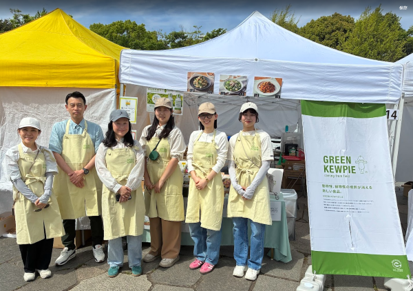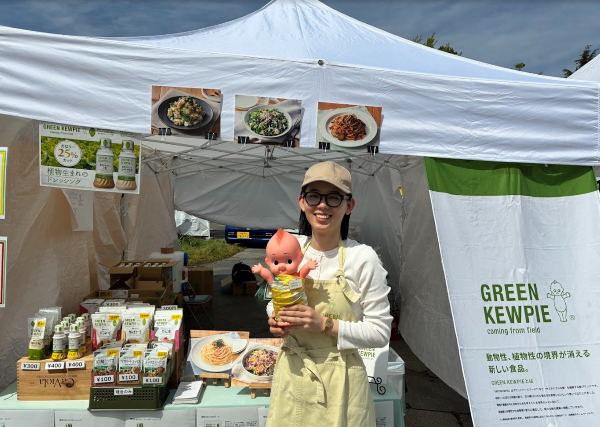 通信販売部ではAmazonやLOHACO、楽天などのECを通じて商品をお届けしています。日々、数字と向き合う仕事をしていますが、今回は木場公園(東京都)で開催されたビーガングルメ祭りに出展しているGREEN KEWPIEに応援スタッフとして参加して、“数字の向こう側”にいるお客さまに会いに行ってきました。