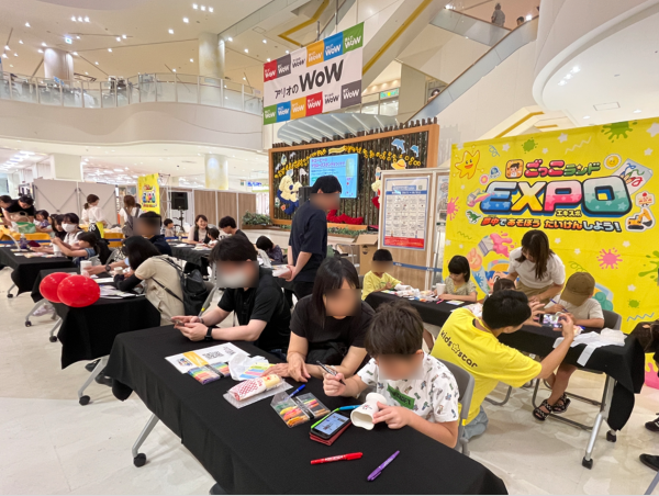 子どもたちがマヨネーズスタンドにお絵描きをしている会場の様子