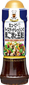 - 黒ごまに五穀(大麦、はとむぎ、あわ、きび、ひえ)を加えた、味わい豊かな和風ドレッシングです。黒ごまの風味に加えて、ごまと五穀の食感が楽しめます。