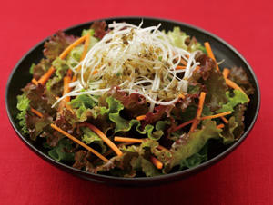 今回、家庭向けに発売する「チョレギサラダドレッシング」は、ごま油、ねぎ、にんにくのコクとうま味にのりを加え、かくし味に、みそと昆布だしを加えることで、深い味わいに仕上げました。また、粒ごま、のり、ねぎなど、チョレギサラダに使う具材をあらかじめドレッシングに加えているため、サニーレタスなどの葉物野菜にかけるだけで、チョレギサラダが簡単にでき上がります。