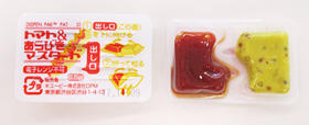 ディスペンパック:「片手で手を汚すことなく、パッケージを破り、中のものを適量、必要な場所に取り出すといういくつもの動作を文字通りワンタッチでエレガントに行なえる優れもの。しかも複雑な構造ではなく、単に入れ物に蓋がかぶさっただけのシンプルな仕様、そして2種類の味にも同時に対応する機能と構造は日本ならではの匠の発想」