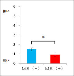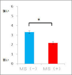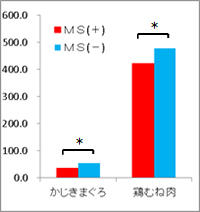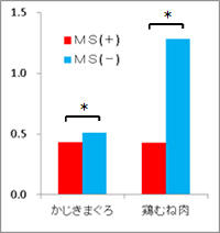 2メニューともに、喫食前・喫食後ともMS(+)群で臭いを感じる程度が有意に低かった(図2、および図3)。また「おいしさ」の評価はMS(+)群で有意に高く、「非常においしい」「おいしい」「ややおいしい」と回答した人は「かじきまぐろのマヨネーズ焼き」では全体の87%、「鶏むね肉のマヨネーズ焼き」は70%だった。(図4、図5)。