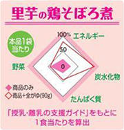 今回、「ハッピーレシピ」シリーズの月齢5ヵ月頃からの商品を除く80g入り23品の裏面に、厚生労働省「授乳・離乳の支援ガイド」を基に算出した栄養充足率をチャートグラフで掲載しました※1。おかずメニューでは、献立の参考になるように、主食を加えた際のデータも記載しています。