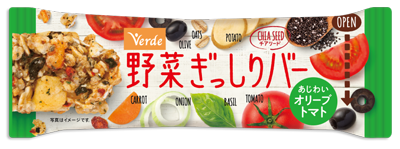 野菜の自然なおいしさを楽しめるバータイプのスナック「ヴェルデ 野菜ぎっしりバー」から「あじわいオリーブトマト」を新発売