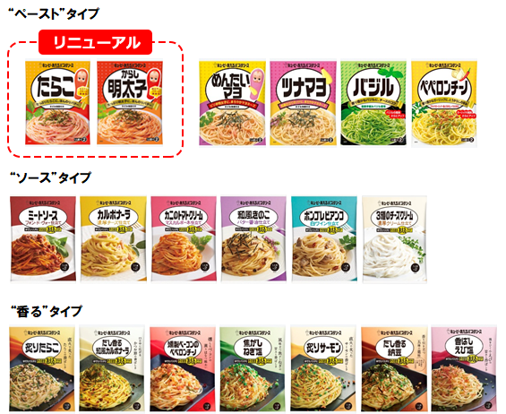 リニューアルする「たらこ」と「からし明太子」は、「あえるパスタソース」シリーズの中でも人気の2品です。今回のリニューアルでは“たらことバターをバランスよく味わえる”配合(2015年2月に特許※取得)をベースに、素材の風味とコクがさらに感じられるように味を見直しました。