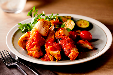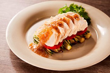 「具沢山ドレッシングトマト」は、加熱したトマトのうま味と爽やかな酸味を生かしたドレッシングです。オリーブオイルや香辛料を加えて香り豊かに仕立てました。トマトの鮮やかな赤い色合いがサラダや肉・魚料理を華やかに仕上げます。