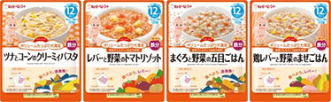 「ハッピーレシピ」シリーズは、月齢5ヵ月頃から12ヵ月頃の赤ちゃん向けのレトルトパウチ入りのベビーフードです。月齢に合わせた素材選びと、具材の大きさや固さの調整により、赤ちゃんの食べる力を育みます。離乳期は味覚形成にも関係が深い時期であることから、だしの使い方を工夫した塩分控えめの調理で、素材のうま味を引き出しています。
