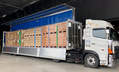 マヨネーズやドレッシングなどの重量品を輸送する場合、最大積載量※1を満たしても、コンテナの空間が余ってしまう場合があります。一方で、ハブラシのような軽量品は、コンテナいっぱいに積み込んでも最大積載量を満たさない場合があります。今回の取り組みでは、従来それぞれ手配していた10トン車を20トンの13メートルセミトレーラーに変更しています。重量品と軽量品を組み合わせて輸送することにより、コンテナ空間を有効活用し、より多くの荷物の輸送に成功しています。