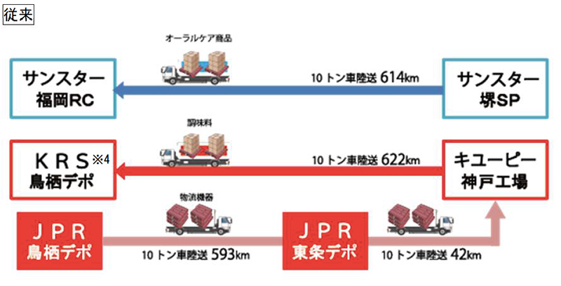 キユーピー、サンスターおよびJPRは、2018年11月から共同輸送の検討を開始しました。2019年1~6月のテスト期間を経て、7月18日(木)から本格的に開始します。