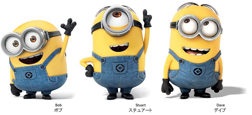 アニメーション映画「怪盗グルー」シリーズに登場する大人気のキャラクターで、怪盗グルーに仕える、いたずら好きでバナナが大好きな謎の黄色い生物。スピンオフ作品「ミニオンズ」では主役として登場。テーマパークでも、「ミニオン」をテーマにしたアトラクションが人気になるなど、好奇心旺盛な明るい性格は、子どもから大人まで幅広い世代に愛されています。2020年は、映画「ミニオンズ」の続編が公開予定で、ますます目が離せないキャラクターです。