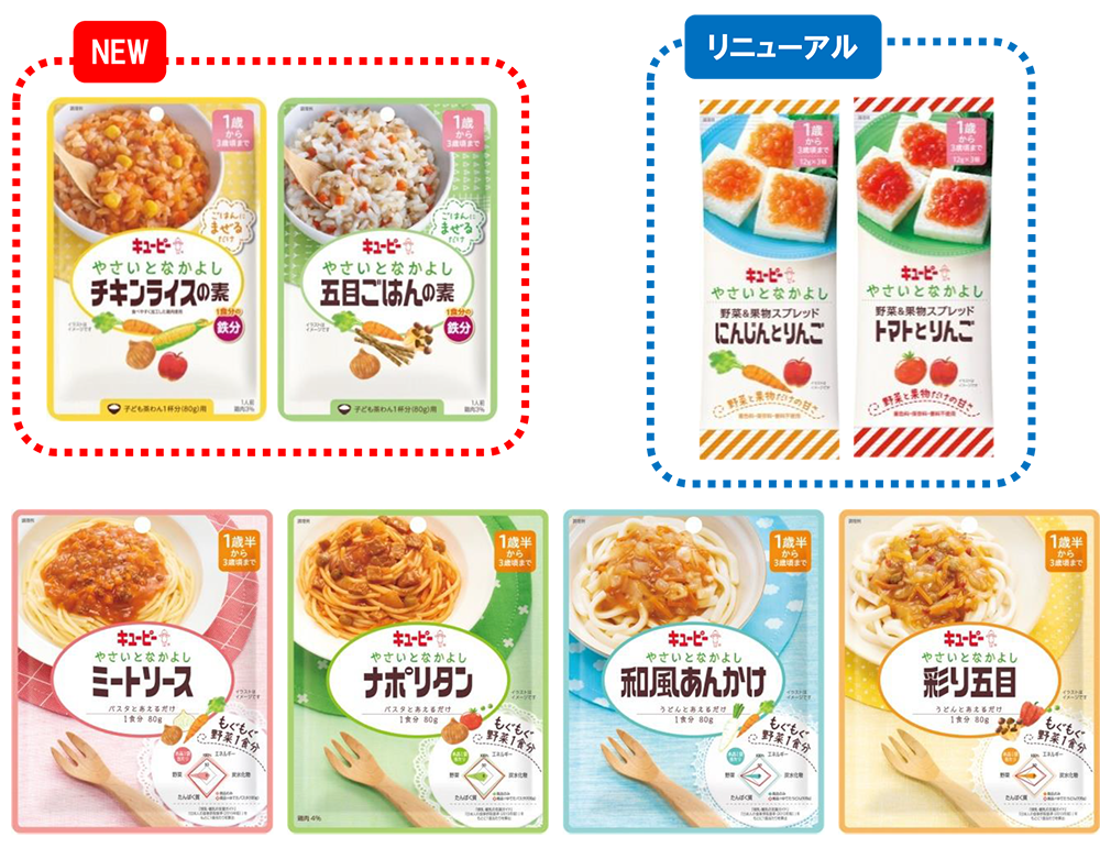 キユーピー株式会社(本社:東京都渋谷区、代表取締役 社長執行役員:長南 収、以下キユーピー)は、1歳頃から3歳頃を対象にした幼児食「やさいとなかよし」シリーズから、ごはんに混ぜる「チキンライスの素」「五目ごはんの素」を新発売します。併せて、幼児向けのパン用スプレッド「野菜&果物スプレッド にんじんとりんご」「野菜&果物スプレッド トマトとりんご」を「やさいとなかよし」シリーズに加え、ラインアップを強化します。
