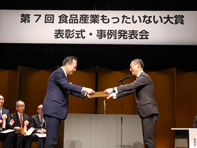 この表彰は、食品産業の持続可能な発展に向け、「省エネルギー・CO2削減」「廃棄物の削減・再生利用」「教育・普及」などの観点から、顕著な実績を挙げている食品関連事業者ならびに食品産業によるこのような取り組みを促進・支援している企業、団体および個人を対象としています。(主催:公益財団法人 食品等流通合理化促進機構、協賛:農林水産省)
