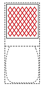 また、この「網目」商標は、「位置商標」(右図)の登録も受けています。位置商標とは、図形等を商品等に付ける位置が特定される商標のことを指します。位置商標の登録制度が特許庁で創設されてからすぐの登録事例(2015年4月)となり、大学の教科書などでも取り上げられました。