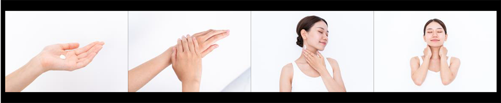 清潔な乾いた手でご使用ください。適量を手にとり、手の甲から全体にかけてやさしくなじませていきます。その後、首全体に塗り、鎖骨上からあごに向かって包み込むように押さえます。
