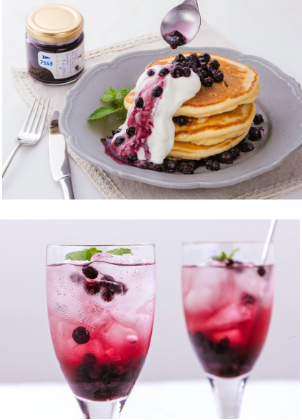 - ワイルドブルーベリーの味を生かすため、メープルシロップとレモン果汁のみを加え、シンプルに仕立てました。