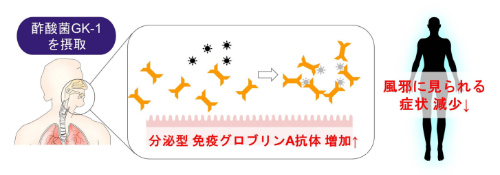 酢酸菌のヒト臨床試験で「分泌型免疫グロブリンA抗体の増加」と「風邪に見られる諸症状の減少」を確認
