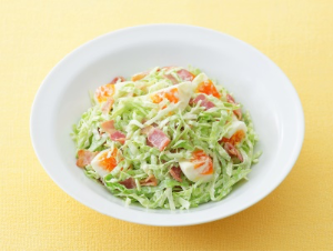 キャベツとゆで卵とベーコンのあえサラダ