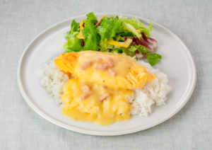 アレンジメニュー:「オムレツとカルボナーラのワンプレートごはん」