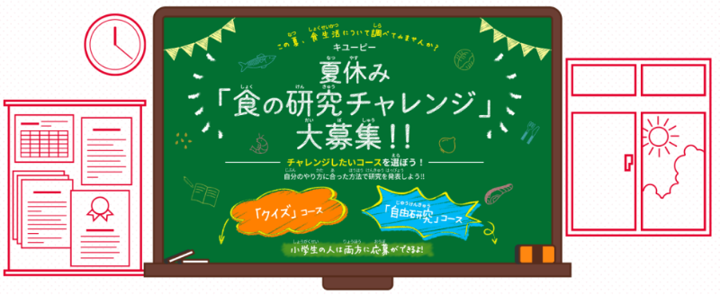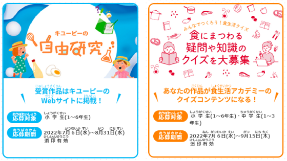 キユーピー株式会社(本社:東京都渋谷区、代表取締役 社長執行役員:髙宮 満、以下キユーピー)は、キユーピー公式サイト内の食育コンテンツ『食生活アカデミー』に、夏休み「食の研究チャレンジ」大募集!!を7月6日(水)に公開し、募集を開始します。