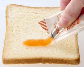 好評の一方で、「手に付きやすい」「片手で塗れたらうれしい」という声も寄せられたことから、従来のトレー容器からスティックタイプの小袋に変更します。片手でもパンに塗りやすく、使い勝手が向上しました。さらに包材の変更により、賞味期間が従来の10カ月から13カ月に延長したことで、食品ロス削減にも期待ができます。
