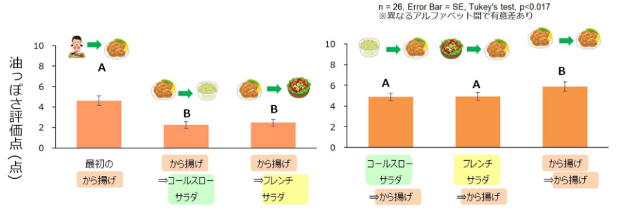 「から揚げ」と「野菜サラダ」を交互に食べると、口内に残る油っぽさが有意に減少