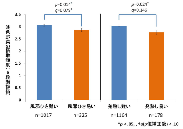 グラフ1 風邪・発熱と淡色野菜の摂取頻度