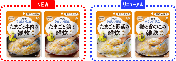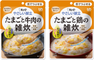 キユーピー「やさしい献立」シリーズ"舌でつぶせる"区分からだしと素材にこだわった「たまごと牛肉の雑炊」「たまごと鶏の雑炊」の2品を新発売
