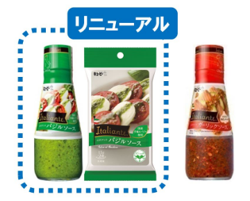 キユーピー株式会社(本社:東京都渋谷区、代表取締役 社長執行役員:髙宮 満、以下キユーピー)は、かけるだけで本格的なバジル風味の料理が楽しめる「Italiante バジルソース」をリニューアルします。塩味を抑えて風味豊かなバジルの香りをさらにアップさせ、カプレーゼやパスタ、肉・魚など、前菜から主食、主菜、副菜まで幅広く使えるよう、汎用性の向上を図ります。