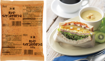 ペイザンヌとは田舎風という意味で、フランスで親しまれているサラダがペイザンヌサラダです。新商品の「キユーピー ペイザンヌサラダソース」は、ベーカリーなどで使いやすいよう、「ペイザンヌサラダ ドレッシング」よりも高粘度に仕上げたソースです。焼いてもダレにくいため、サンドイッチや焼成パン、オーブン料理に最適です。「ペイザンヌサラダ ドレッシング」同様、熟成卵黄のコクとうま味に、タラゴンやチャイブなどのハーブの香り、ディジョンマスタードとエシャロットを加えた奥深い味わいが特徴です。