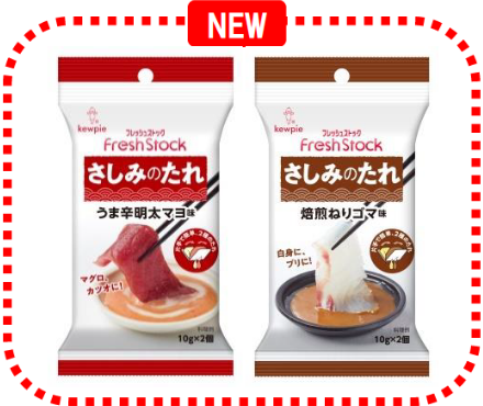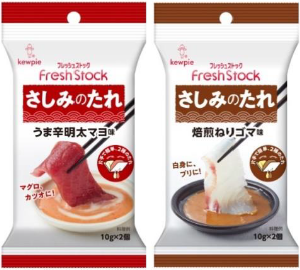 キユーピー株式会社(本社:東京都渋谷区、代表取締役 社長執行役員:髙宮 満、以下キユーピー)は、生鮮売場専用商品ブランド『フレッシュストック®』から、「さしみのたれ」を新発売します。ラインアップは「うま辛明太マヨ味」と「焙煎ねりゴマ味」の2品です。片手で簡単に中身を出せる、キユーピーグループのオリジナル容器「パキッテ」を採用し、2つの異なる調味料が直前に合わさることで風味豊かな「さしみのたれ」を実現しています。