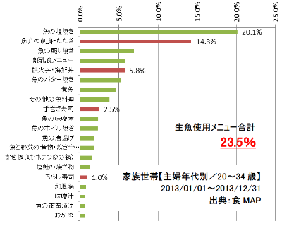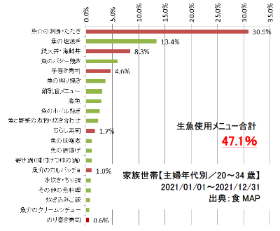 魚を刺身など「生」で食べるメニューが多様化。20~34歳の主婦に変化