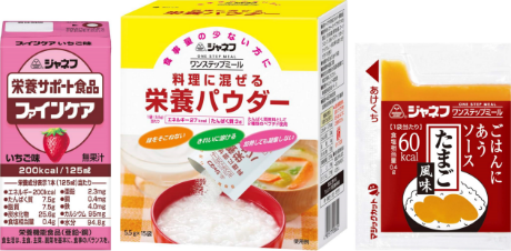 災害時は、心理的なストレスから、よりやわらかい食事しか食べられなくなったり、またその変化が加速したりするリスクが潜んでいます。普通食の人でも、通常の固さの食事が食べられなくなってしまうことがあります。キユーピーでは、お客さま、流通、病院・施設などに対し、「やさしい献立」と一緒に、栄養補助食品などを取り揃える「ジャネフ」の商品を提案することで、災害時のさまざまなリスクに対応した備えの啓発を続けています。