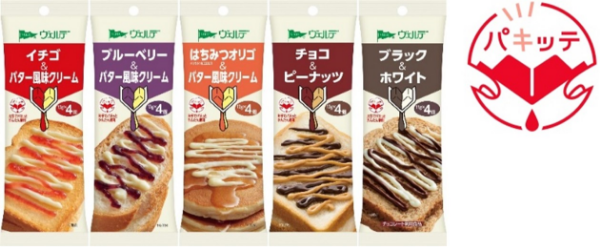 パキッテシリーズは、使い切りで衛生的な容器と、2種類のスプレッドを同時に絞り出せるツインソースのおいしさが支持され、近年好調に売上を伸ばしています。今回のリニューアルでは、バター風味クリームに使用している食塩をロレーヌ岩塩※1に変更し、塩味をまろやかに仕上げました。また、チョコスプレッドのカカオとココアパウダーの配合を見直すことで、チョコの風味をさらにアップさせました。これによりパンに塗って食べた際の味のバランスがよくなりました。