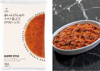 ㊧「スノーマン 赤いんげん豆のトマト仕立て(チリビーンズ)」、㊨「赤いんげん豆のトマト煮込み」