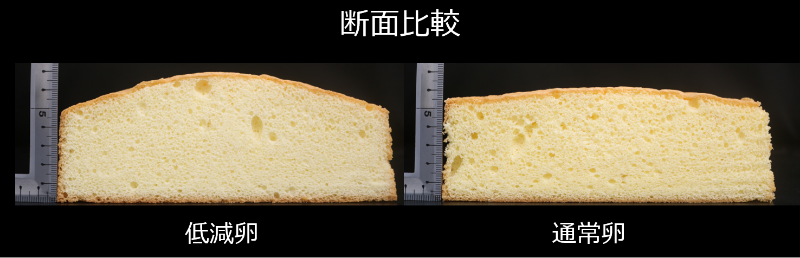 図2 アレルギー低減卵と通常卵のスポンジケーキの膨らみ方を断面で比較