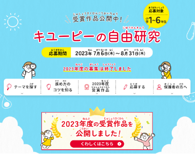 夏休みの自由研究をサポートしたい!キユーピー公式サイト内の食育コンテンツ『食生活アカデミー』に「自由研究お助けガイド」を新設