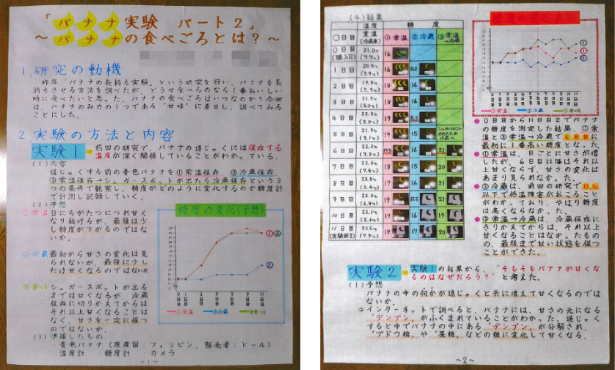 受賞理由:昨年度も応募してくれた「バナナの長持ち実験」をさらに発展させ、「バナナの食べごろはいつなのか」を解き明かしたこと。