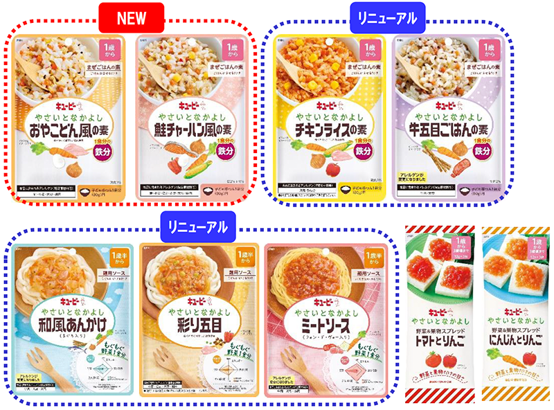 キユーピー株式会社(本社:東京都渋谷区、代表取締役 社長執行役員:髙宮 満、以下キユーピー)は、幼児食「やさいとなかよし」シリーズから、まぜごはんの素「おやこどん風の素」「鮭チャーハン風の素」を新発売します。同時に既存の「チキンライスの素」「牛五目ごはんの素」をリニューアルし、まぜごはんの素は計4品のラインアップになります。また、同シリーズの麺用ソースもリニューアルし「和風あんかけ(まぐろ入り)」「彩り五目」「ミートソース(フォン・ド・ヴォー入り)」の計7品を3月7日(木)から全国に出荷します。