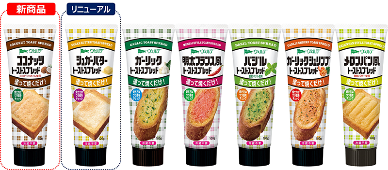 若年層やファミリー層から支持が高い「シュガーバタートーストスプレッド」は、グラニュー糖を増量することで食感が良くなり、バターの風味もさらに向上しました。併せてシリーズ全品について、油脂の配合と製法の見直しを行い、「バジル」の賞味期間を11カ月から13カ月に、「バジル」以外の既存5品を13カ月から19カ月に延長します(新商品「ココナッツ」の賞味期間も19カ月)。