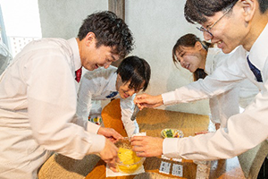 4人1組でマヨネーズ手作り体験