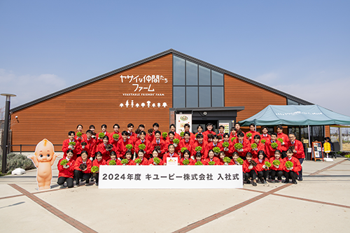 キユーピー株式会社(本社:東京都渋谷区、代表取締役 社長執行役員:髙宮 満、以下キユーピー)は、総合職採用の新入社員46名を対象として、キユーピー初の体験型入社式を2024年4月1日(月)に深谷テラス ヤサイな仲間たちファーム※(埼玉県深谷市)で実施しました。