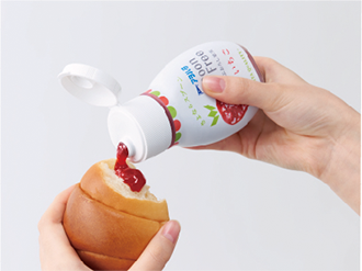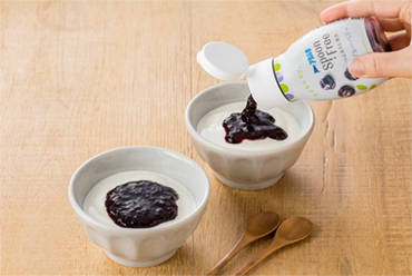 スプーンを使わずにパンに塗れる、ボトル容器に入ったフルーツスプレッドです。甘さを控えめにし、果実の食感や存在感が残るように果肉の大きさを整えました。さっと使える容器形態のため、食パンだけでなく、ヨーグルト、ドリンク、アイスクリーム、テーブルブレッドなど幅広い用途に使用できます。