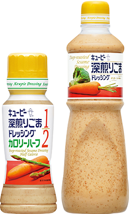 深煎りごまドレッシングの味わいを大切に、カロリーを半分にしました。(当社「深煎りごまドレッシング」対比でカロリー50%カット)