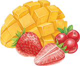 マンゴーの甘みに、クランベリーやいちご、ローズヒップ果汁の酸味がきいた甘酸っぱくてさわやかな味わいです。