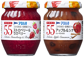 アヲハタ株式会社(本社:広島県竹原市、代表取締役社長:山本範雄、以下アヲハタ)は、フルーツ本来の色と香りにこだわったコクのある低糖度ジャム「アヲハタ 55」から、「ストロベリー&ラズベリー」「アップル&シナモン」を秋冬の季節限定品として再発売します。